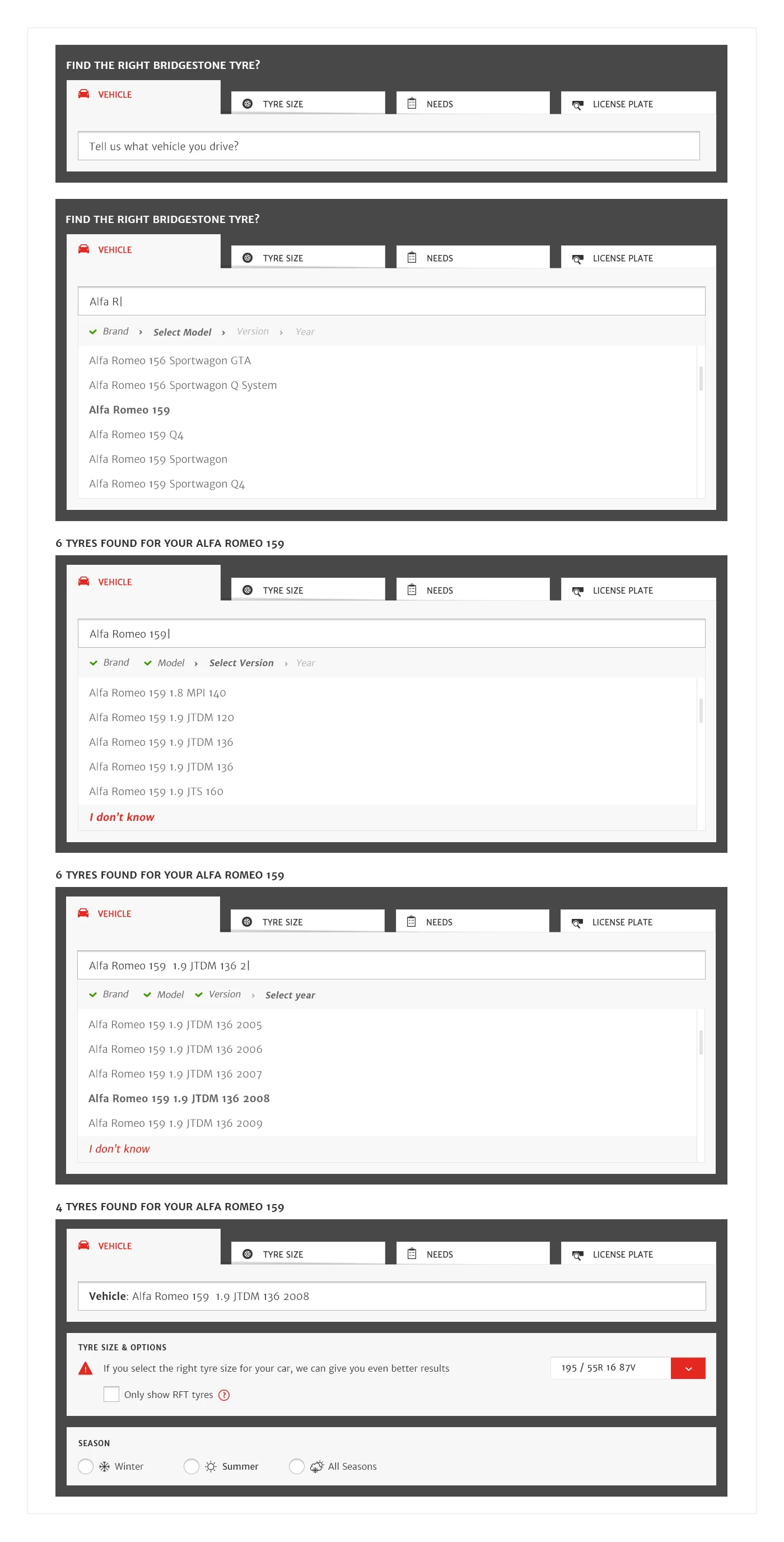 - Designing a consistent search module on different levels of the site (Tyre catalog vs Range page vs Product Detail).