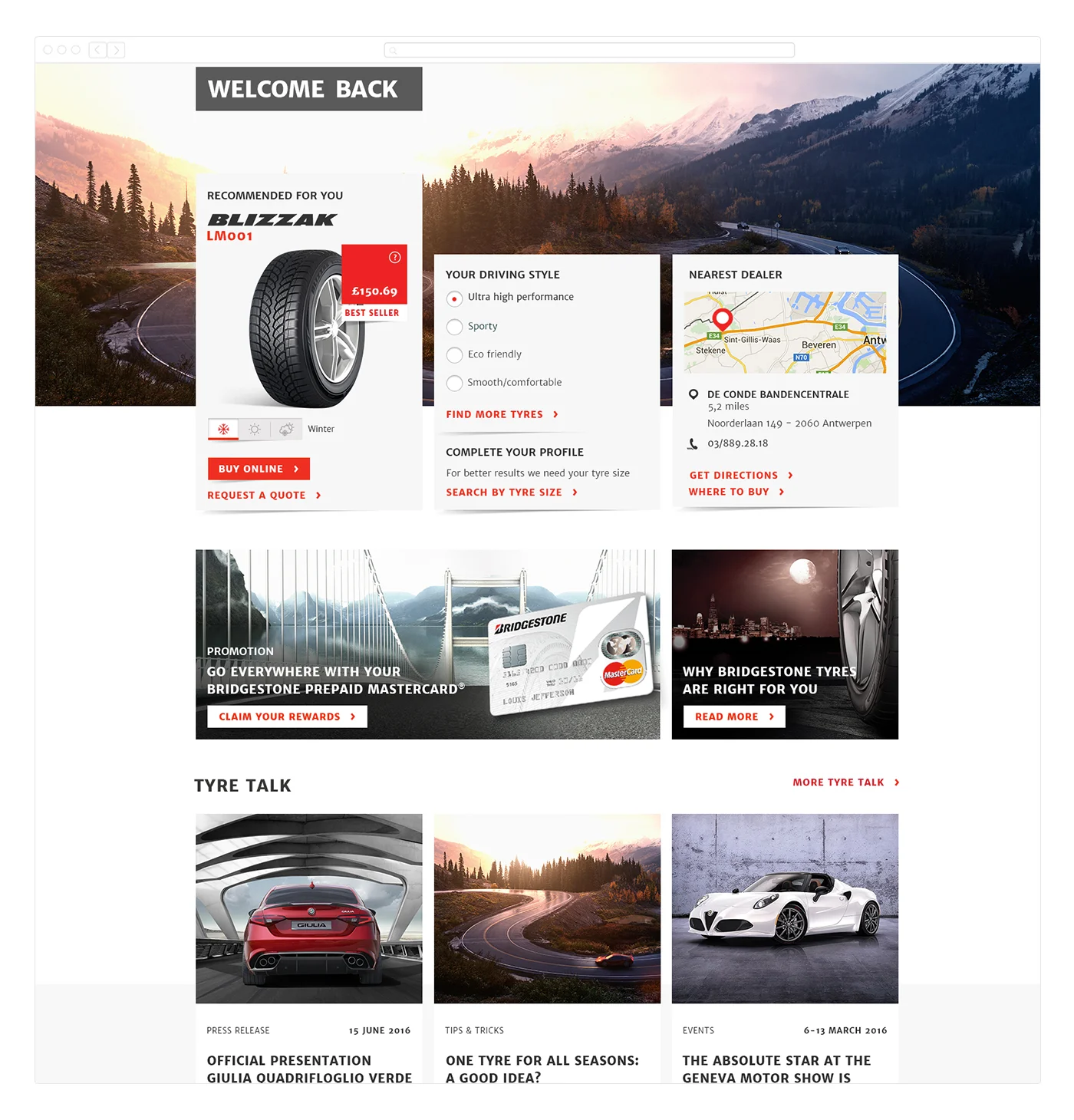 One of the first proportions for the homepage personalization. The header was too heavy and it was unclear to the customer how they had to complete their tyre profile.