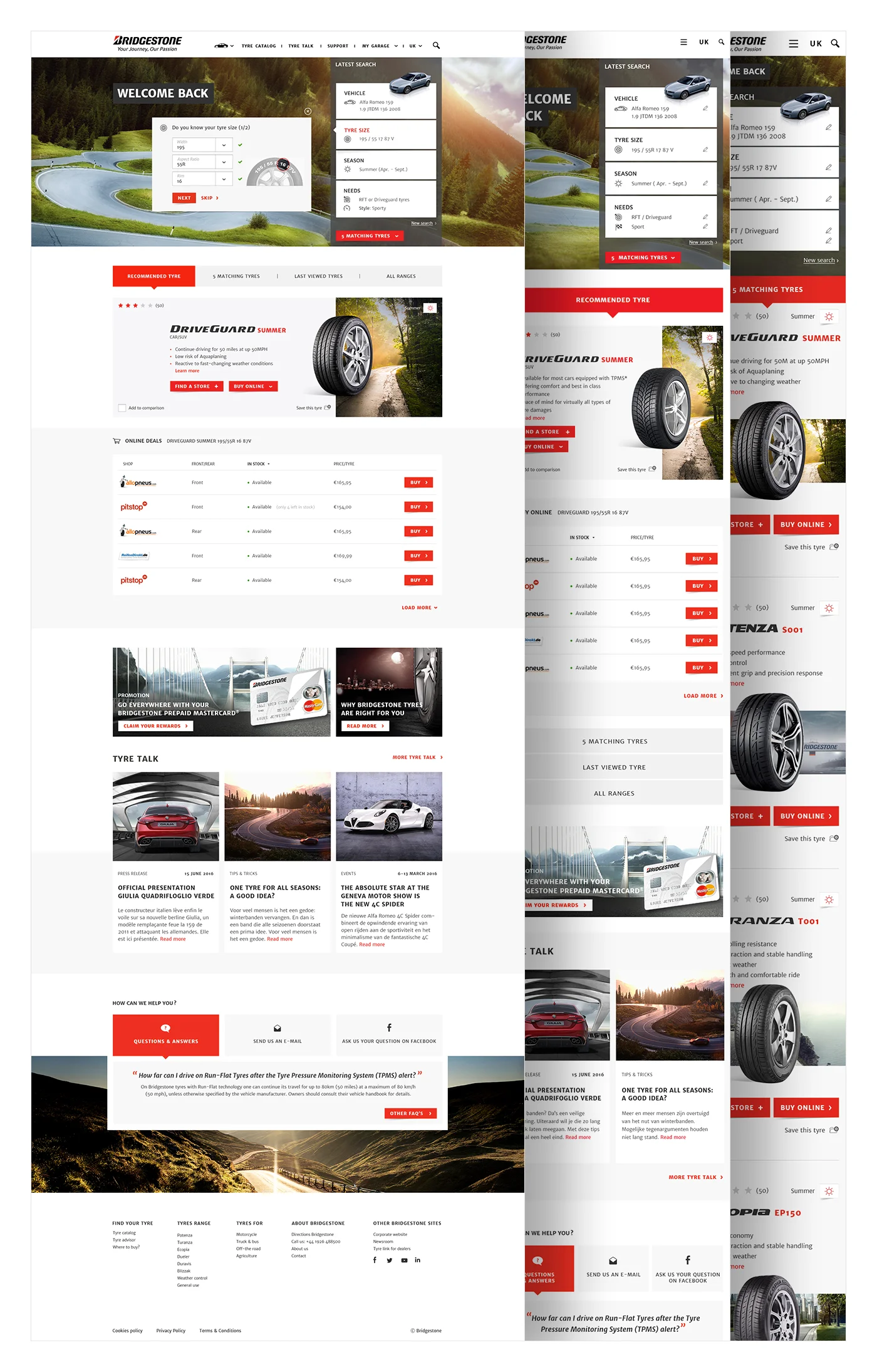 - Put as much personalized information (recommend tyre, other matching tyres, last viewed tyres, specific articles matching your search by car, your favorite dealer locator,…) as possible above the fold.